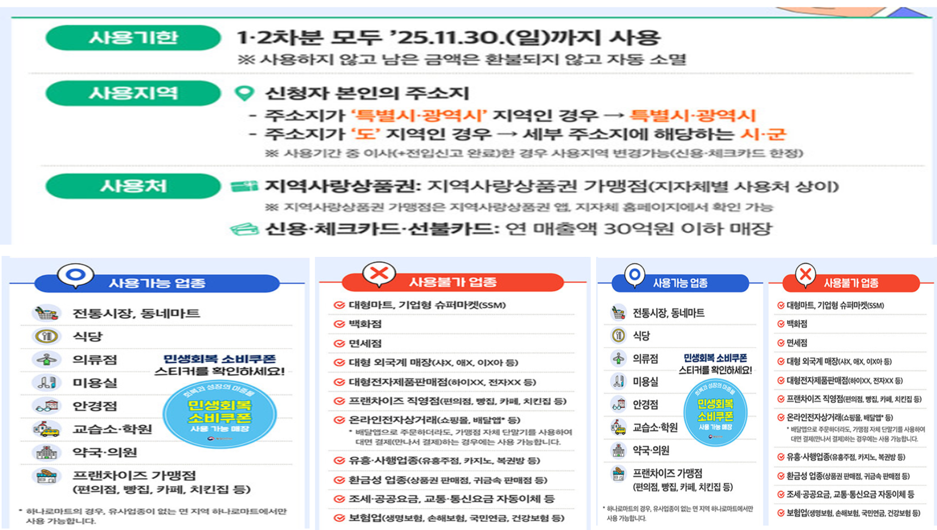 ✅ 주의 사항: 대형 프랜차이즈·백화점은 사용 불가