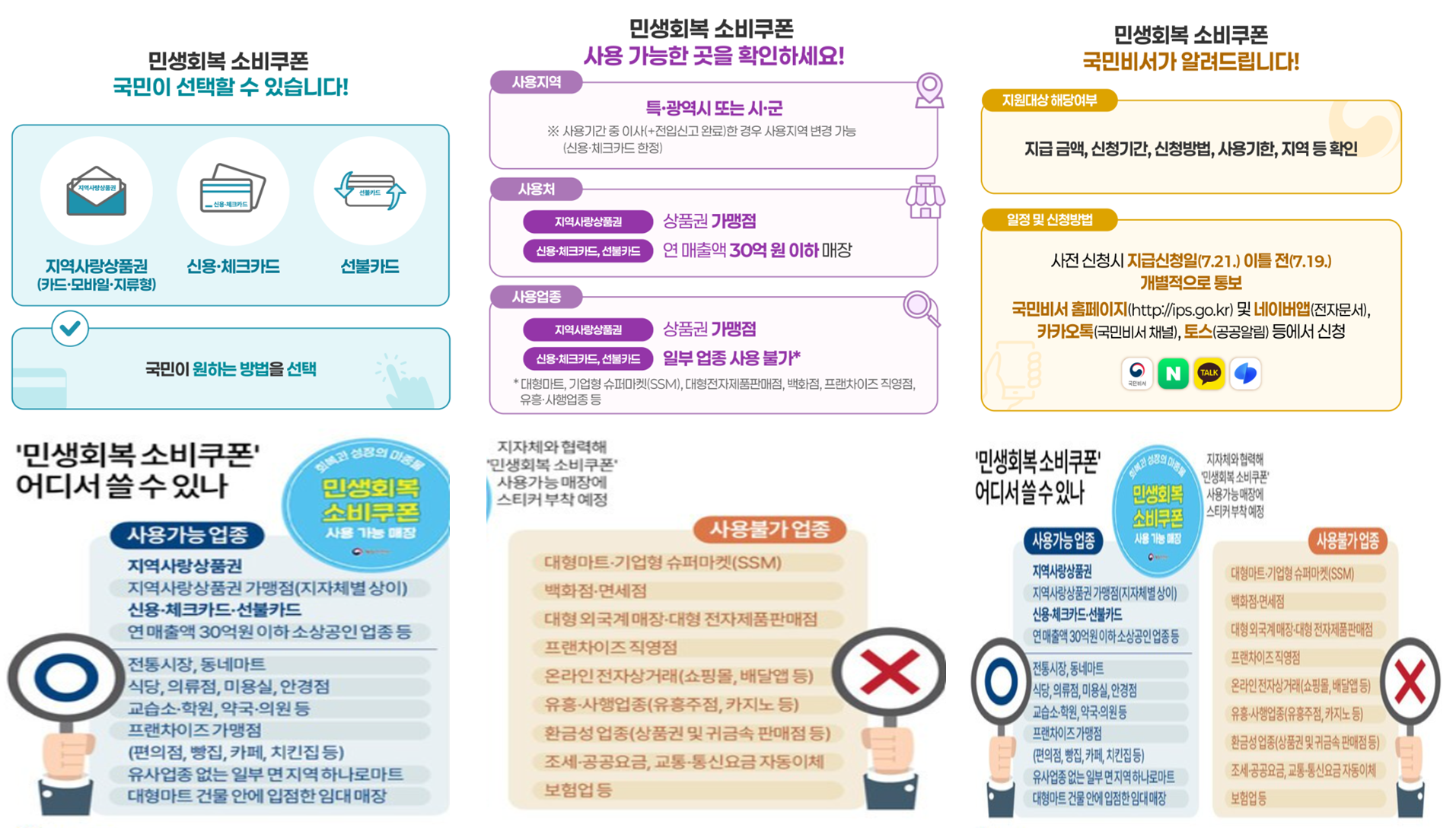 ‘민생회복 소비쿠폰’은 단순한 할인 혜택 그 이상으로, 지역 경제를 살리고 우리 생활을 응원하는 정부의 정책입니다. 사용처를 정확히 알고 똑똑하게 활용하신다면, 생활비 절약에 큰 도움이 될 수 있습니다. 쿠폰을 받은 분들은 꼭 사용 가능한 가맹점을 미리 확인해보세요.