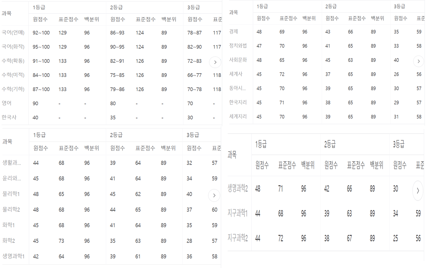 과목 | 1등급 컷 | 2등급 컷 | 특징