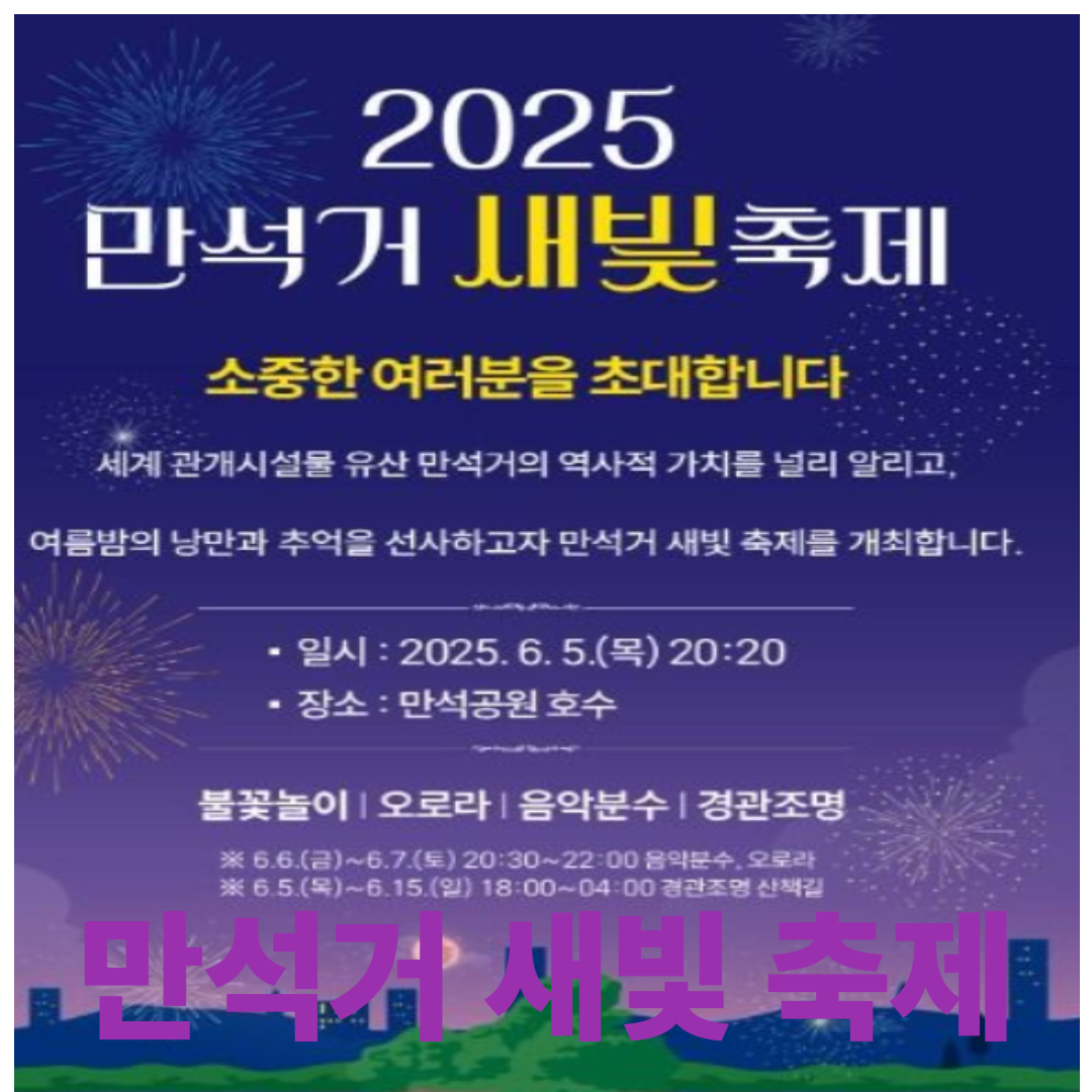 만석거 새빛 축제는 자연과 빛, 문화가 어우러지는 아름다운 야간 축제로, 가족, 연인, 친구 누구와도 즐기기 좋은 지역 대표 행사입니다.