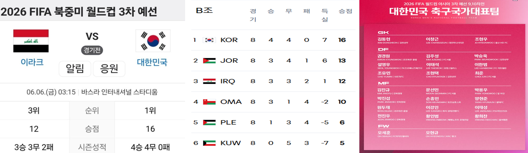 2026년 북중미 월드컵 아시아 지역 3차 예선이 한창 진행 중입니다. 이번 글에서는 한국 vs 이라크 경기 중계 일정을 중심으로, 팬들이 꼭 알아야 할 정보를 정리해 드리겠습니다.이번 3차전 이라크 원정 경기로 진행 되고 한국시간 6일 새벽 03시 중계로 많은 관심 응원 해주시면 한국 대표팀 한테 이 기사 내용에 게임 일정 시간 방송 채널 많은 시청 방법 요약 했어니 많은 도움되길 바라겠습니다.